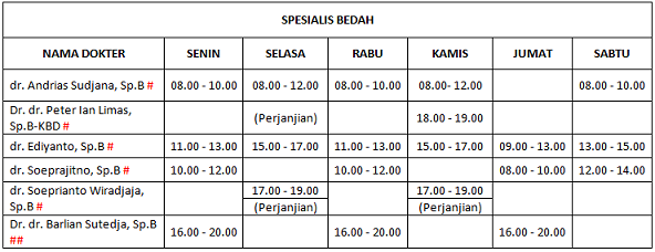 Untuk perkiraan biaya konsultasi dengan Dokter Spesialis Bedah sebesar ± Rp300.000 - 600.000 (di luar biaya yang lainnya).