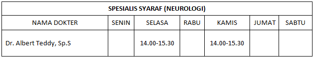 Berikut adalah jadwal praktek dr. Albert Teddy, Sp.S: