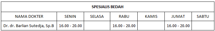 Menjawab pertanyaan Bapak, beliau adalah Dokter Spesialis Bedah di RS. Gading Pluit.