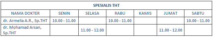 Berikut kami informasikan jadwal praktek Dokter Spesialis THT di RS. Gading Pluit: