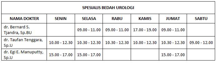 Mau tanya untuk dokter bagian urologi atas nama siapa ya ? dan kapan saja jadwal nya.. saya mau daftar