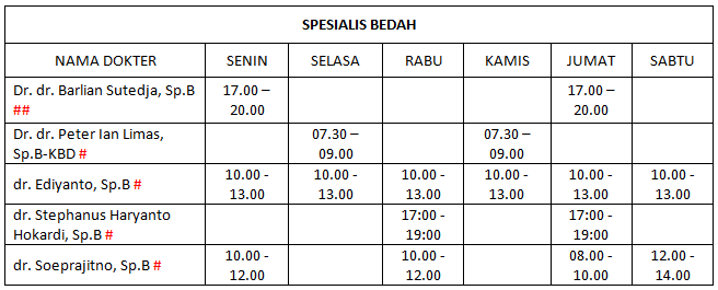 Adapun jadwal prakteknya sebagai berikut:
