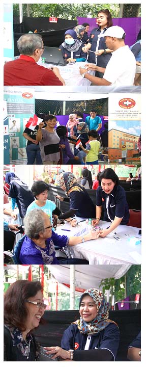 Jakarta – 22/0817 Rumah Sakit GADING PLUIT berpartisipasi dalam event Bazaar Kemerdekaan Bhineka Tunggal Ika yang diselenggarakan oleh RW 012 Kelapa Gading dalam rangka perayaan kemerdekaan RI yang ke-72. Pada event Bazaar yang berlangsung selama 2 hari (Sabtu-Minggu, 19-20 Agustus 2017), RSGP menyediakan layanan pemeriksaan kesehatan secara gratis kepada pengunjung bazaar, antara lain: Tensimeter, Gula Darah Sewaktu (GDS), Body Mass Index (BMI), dan Konsultasi Dokter. Antusias warga sangat tinggi dengan diadakan kegiatan ini terbukti dari jumlah pengunjung both RSGP yang mencapai kurang lebih 370 orang terdiri dari kaum remaja, dewasa dan lansia. Kegiatan ini diikuti juga oleh beberapa instansi pendidikan, laboratorium/klinik dan beraneka jenis kuliner Indonesia yang tentunya menarik minat masyarakat untuk mengunjungi bazaar. Warga sekitar berharap kegiatan ini rutin diselenggarakan terutama untuk pelayanan kesehatan seperti yang dilakukan RSGP sehingga masyarakat lebih peduli dengan kesehatan dan Rumah Sakit bisa menjadi sarana untuk mengedukasi masyarakat tentang pentingnya kesehatan. Acara ini ditutup dengan panggung hiburan warga yang dihadiri oleh Lurah, Kapolsek dan pengurus RW 012 Kelapa Gading. JJ (HMKT)