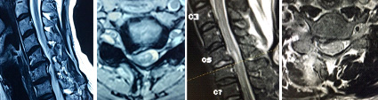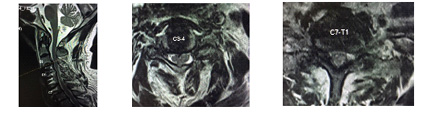| Gambar 6.Sebelum operasi PSCD, Pasien usia78 tahun, sudah dilakukan operasi di Singapore tahun 2012, terpasang implan C4,5,6,7, pada saat ini terjepit C3-4 dan C7-T1 |